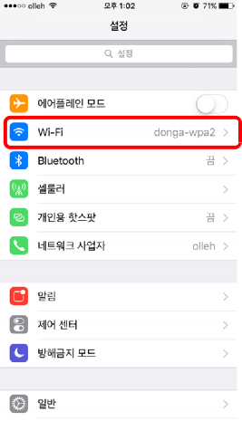 <그림1>과 같이 설정에서 Wi-Fi를 선택합니다.